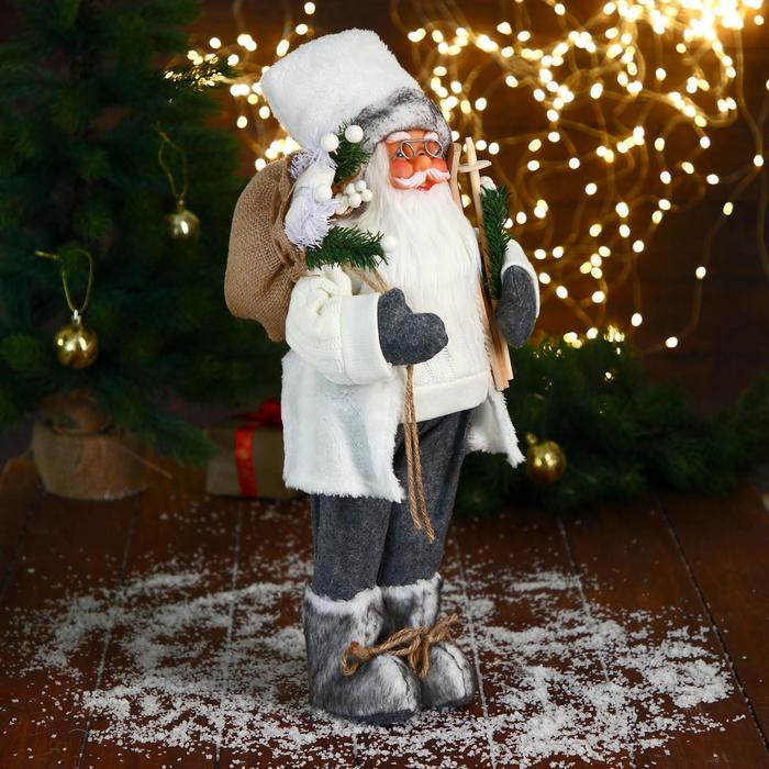 Дед Мороз "В белом свитере, с лыжами" 17х45 см
