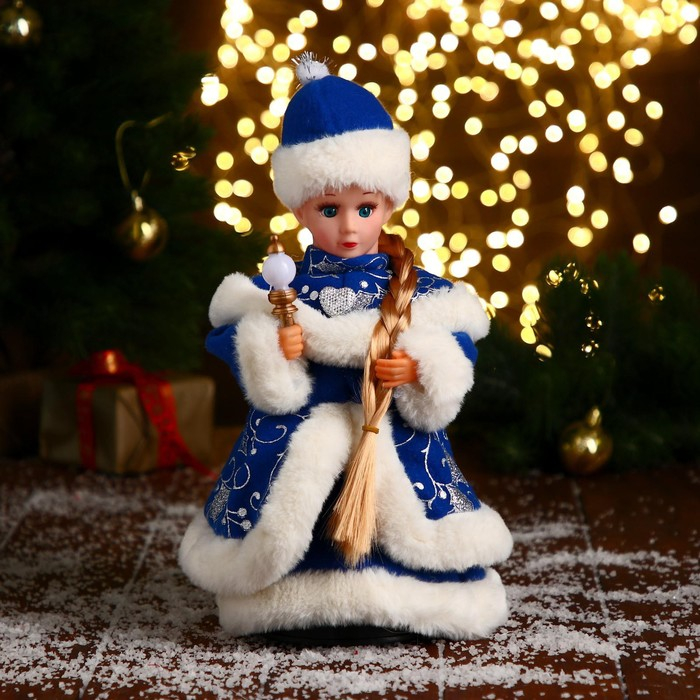 Снегурочка "В синей шубке с сердечком" двигается, 30 см
