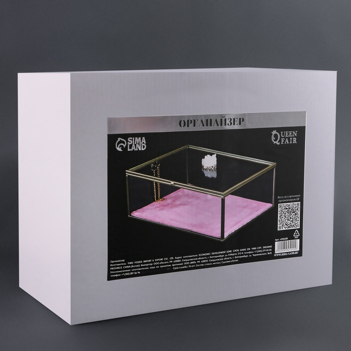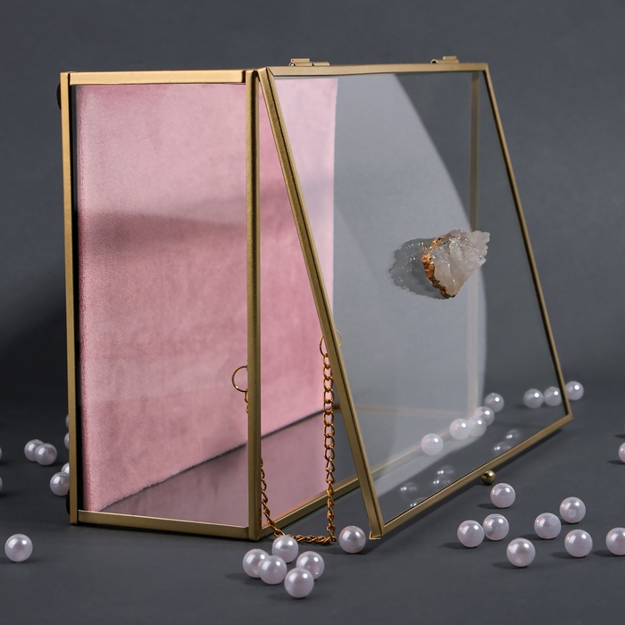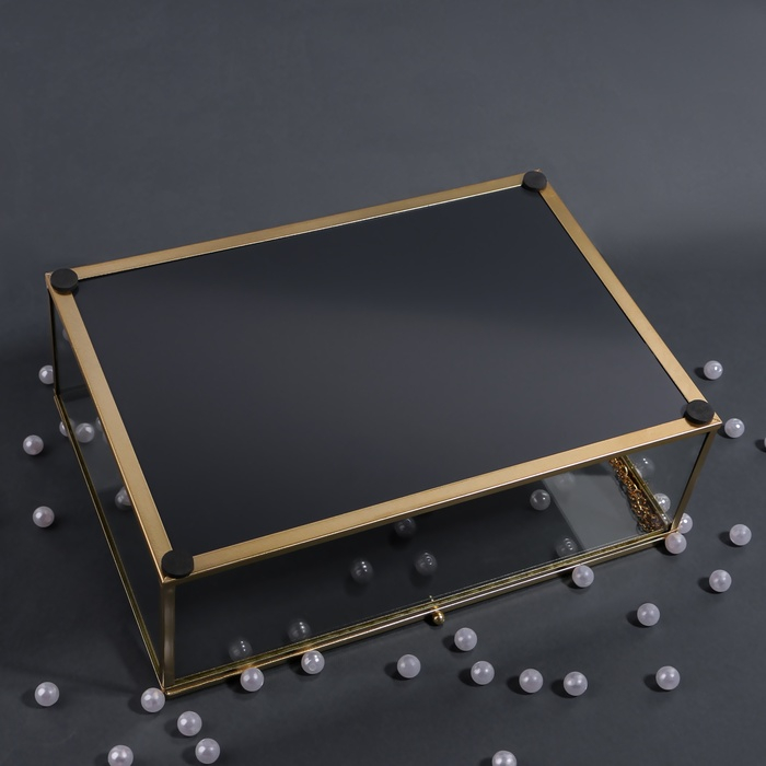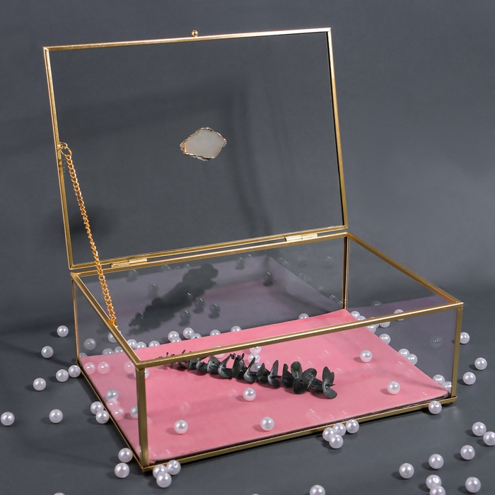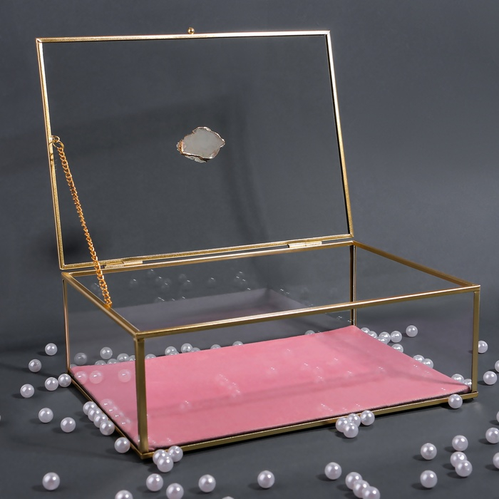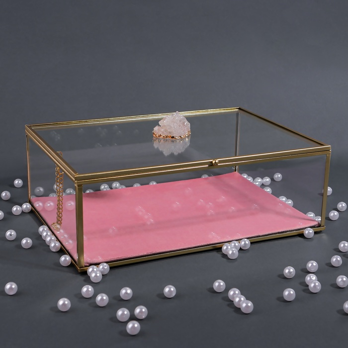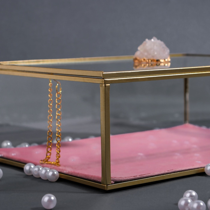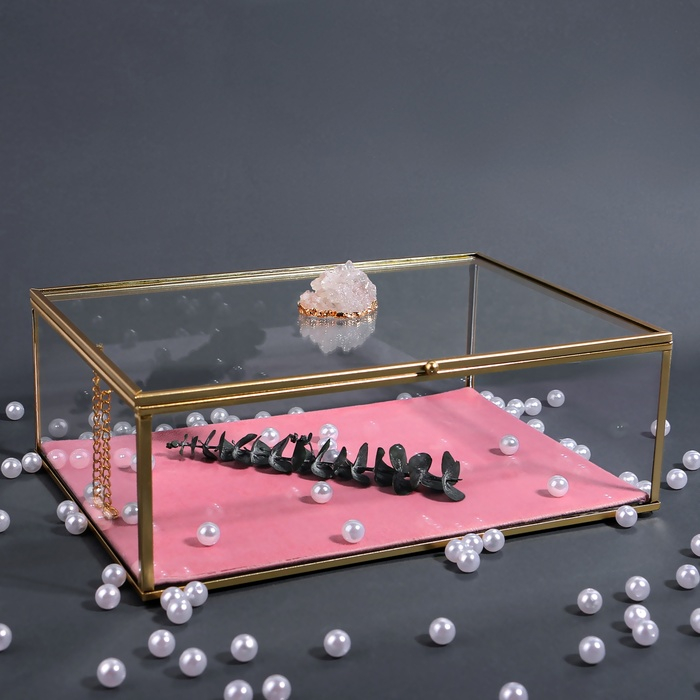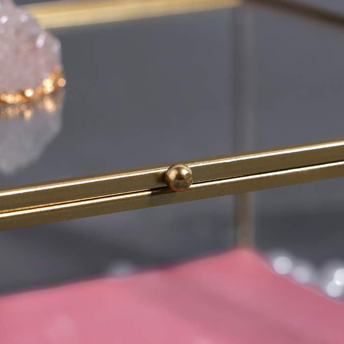 Органайзер для хранения «Кристалл», с крышкой, стеклянный, 1 секция, 25 × 18,3 × 11 см, цвет прозрачный/медный/розовый