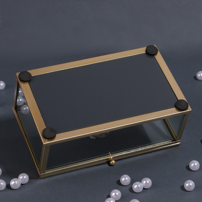 Стеклянная шкатулка с металлической окантовкой удачно впишется в любой интерьер. Подойдёт для хранения косметики и макияжных принадлежностей, бижутерии и украшений, хозяйственных и других важных мелочей. С органайзером без труда получится поддерживать порядок на туалетном столике или полочке в ванной.