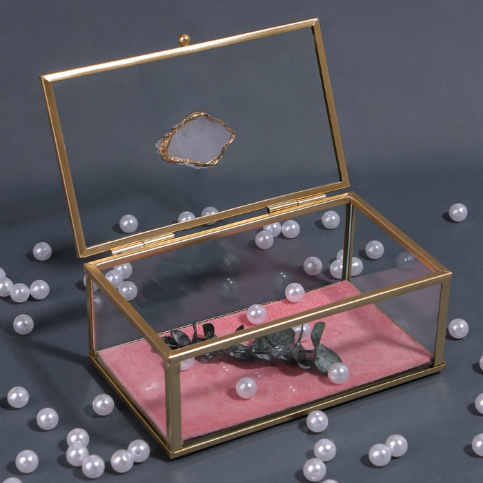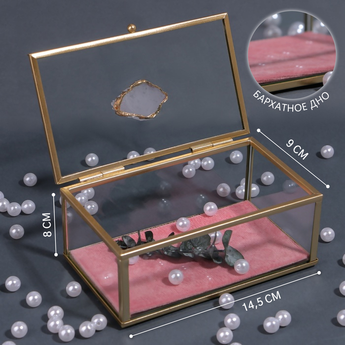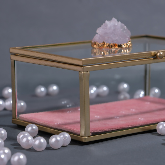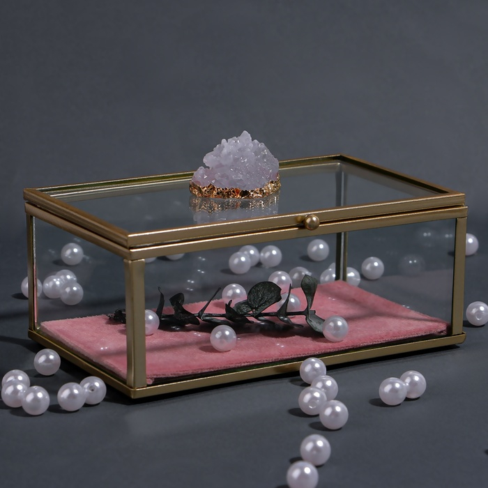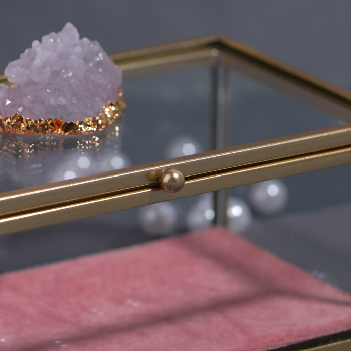 Органайзер для хранения «Кристалл», с крышкой, стеклянный, 1 секция, 14,5 × 9 × 8 см, цвет прозрачный/медный/розовый