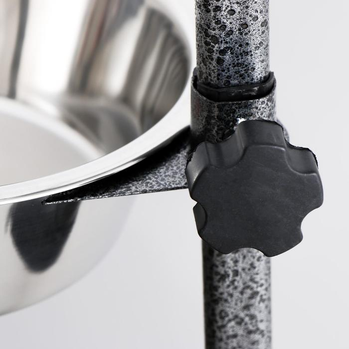 Стойка с 2-мя мисками для кормления сразу нескольких животных, это – идеальное решение для кормления щенков и собак подростков, живущих на одной территории. Качественные, практичные и функциональные миски для собак размещены на регулируемой подставке, которая будет "расти" вместе с вашими малышами. Винтовая кормушка убережёт помещение от загрязнения кормом и водой. Металлическая конструкция очень устойчивая, поэтому ее очень сложно сдвинуть или опрокинуть даже самым активным щенкам. Стойка и миски хорошо переносят обработку горячей водой, моющими и дезинфицирующими средствами.