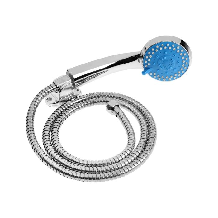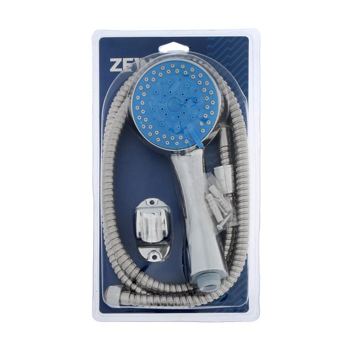 Набор для душа ZEIN Z0705, шланг 150 см, держатель, лейка 5 режимов, синий/хром