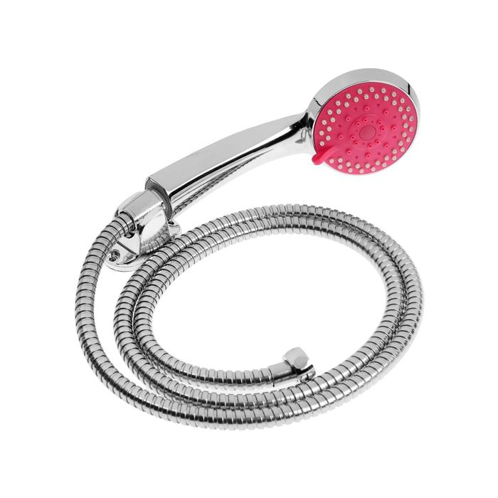Набор для душа ZEIN Z0805, шланг 150 см, держатель, лейка 5 режимов, розовый/хром