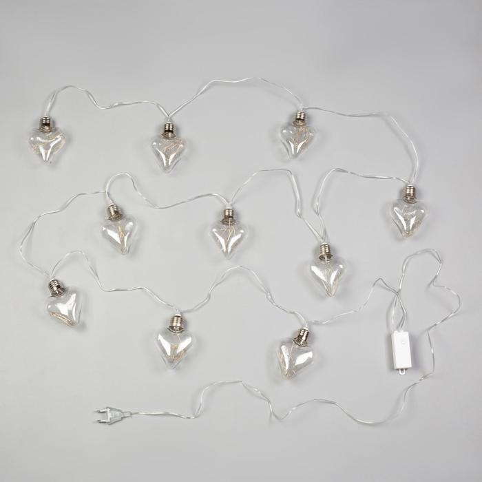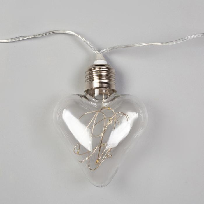 Гирлянда «Нить» 3 м с насадками «Лампочки сердца», IP20, прозрачная нить, 80 LED, свечение мульти, 8 режимов, 220 В