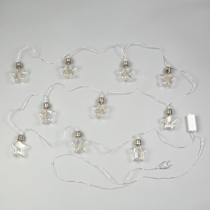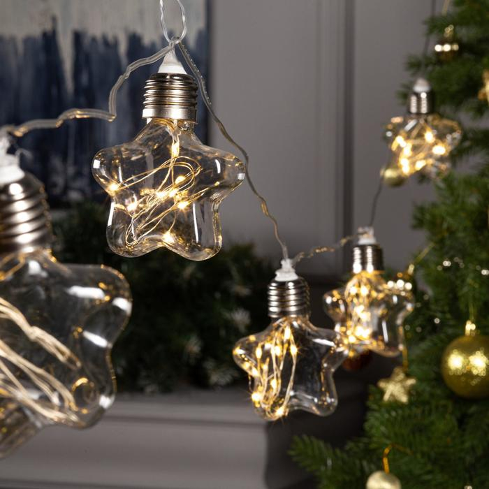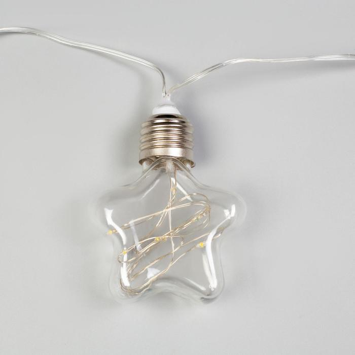 Гирлянда «Нить» 3 м с насадками «Лампочки звёздочки», IP20, прозрачная нить, 80 LED, свечение тёплое белое, 8 режимов, 220 В