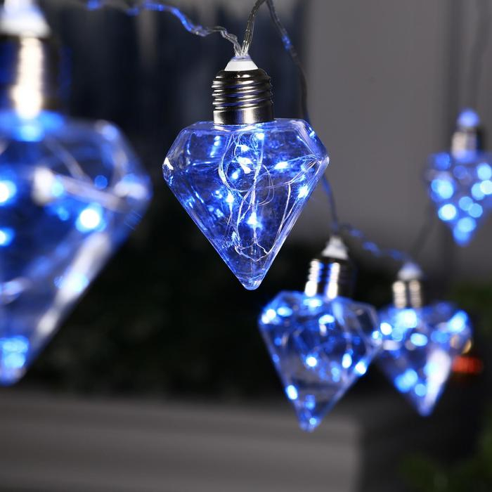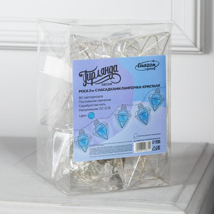 Гирлянда «Нить» 3 м с насадками «Лампочки кристалл», IP20, прозрачная нить, 80 LED, свечение синее, 8 режимов, 220 В