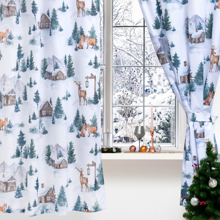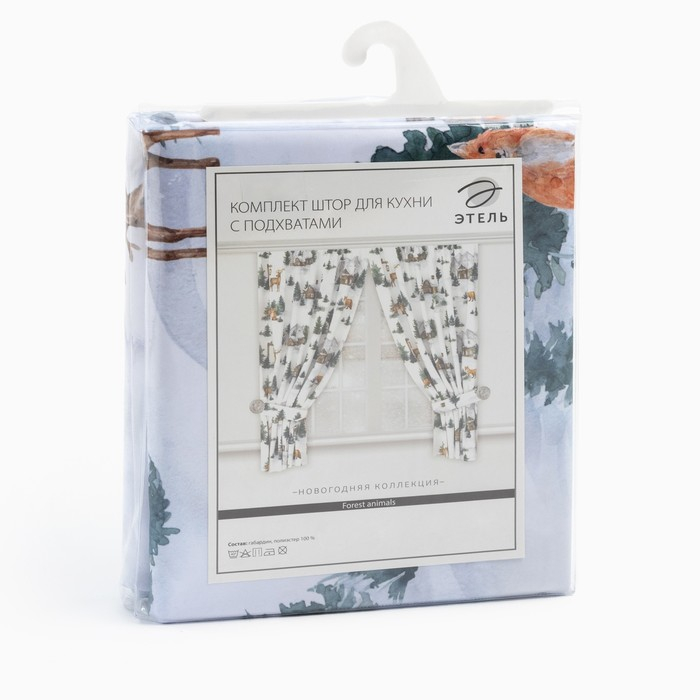 Комплект штор для кухни с подхватами Forest animals 145х180см-2 шт., габардин
