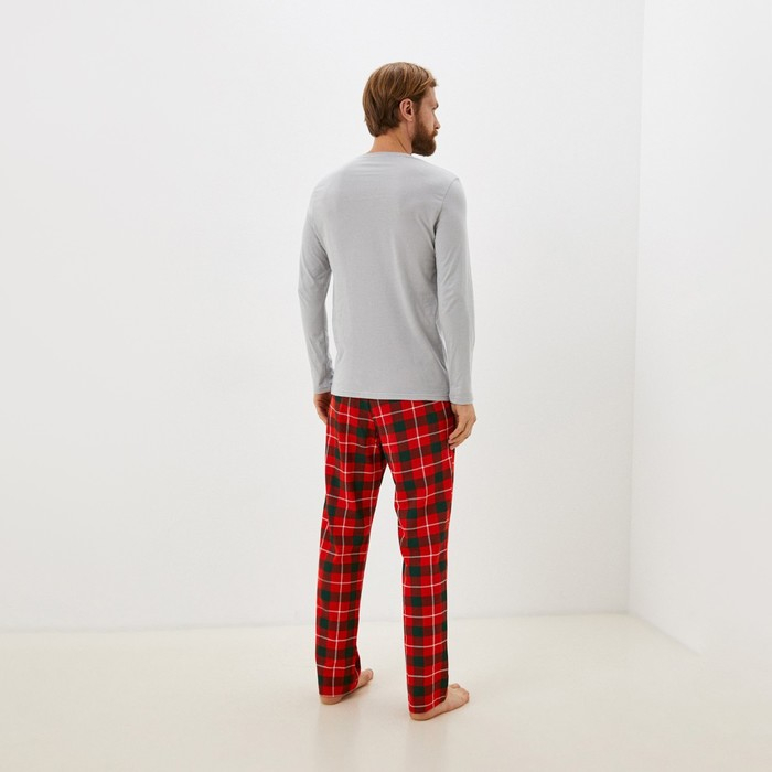 Пижама новогодняя мужская KAFTAN "Santa", цвет красный/серый, размер 52