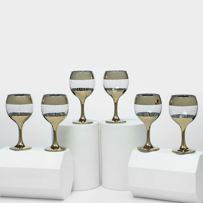 Набор бокалов «Геометрия», 290 мл, с гравировкой и напылением, 6 шт, цвет напыления золотой