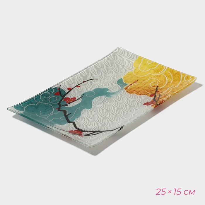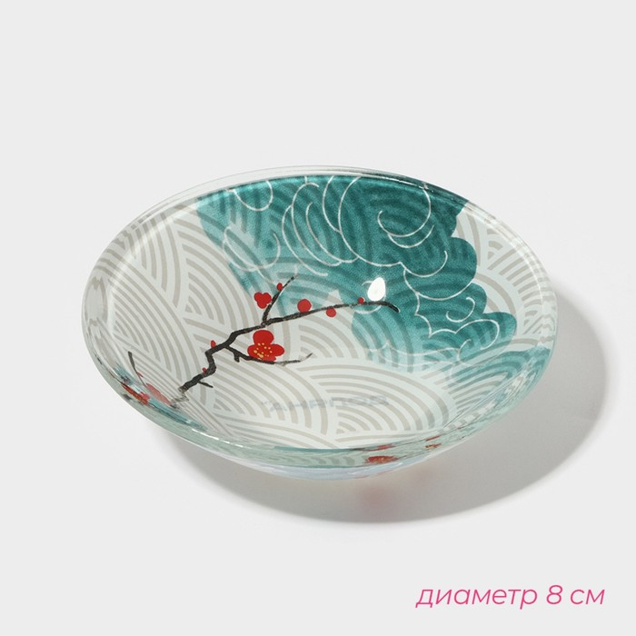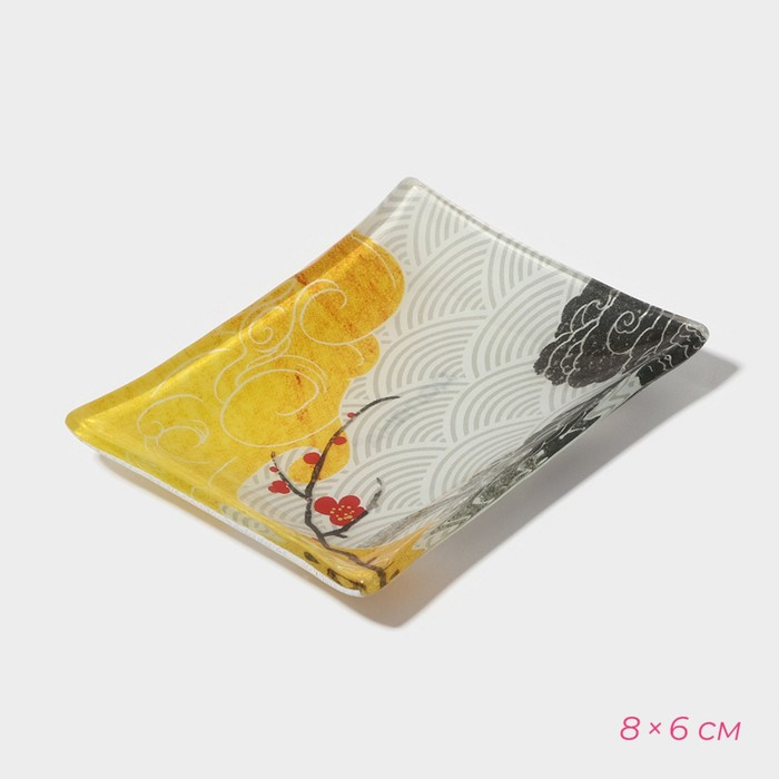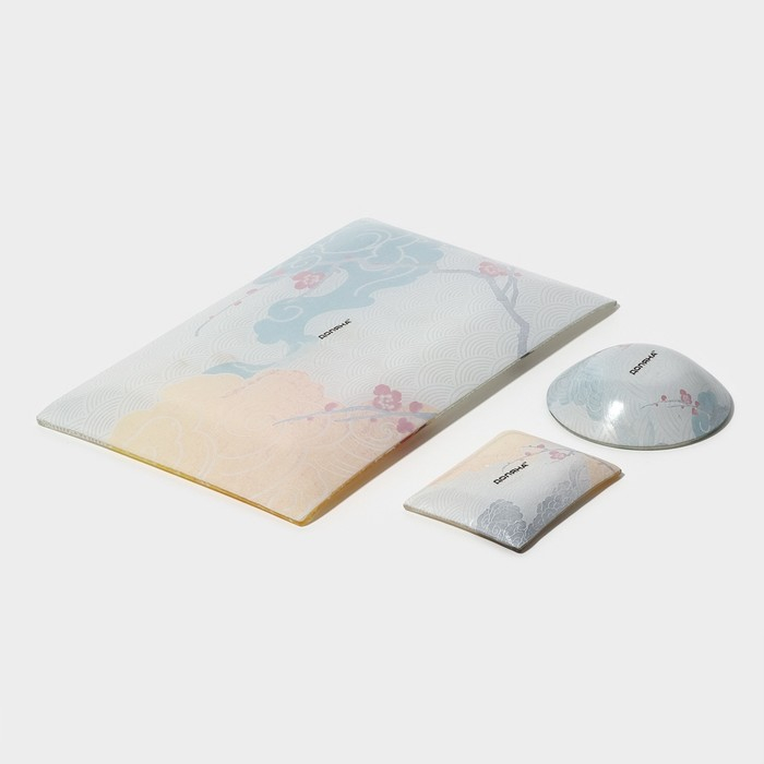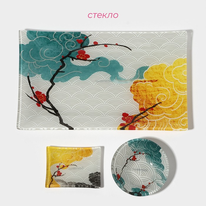 Набор для суши из стекла Доляна «Сакура», 3 предмета: соусники 8×2 см, 8×6 см, подставка 25×15×2 см