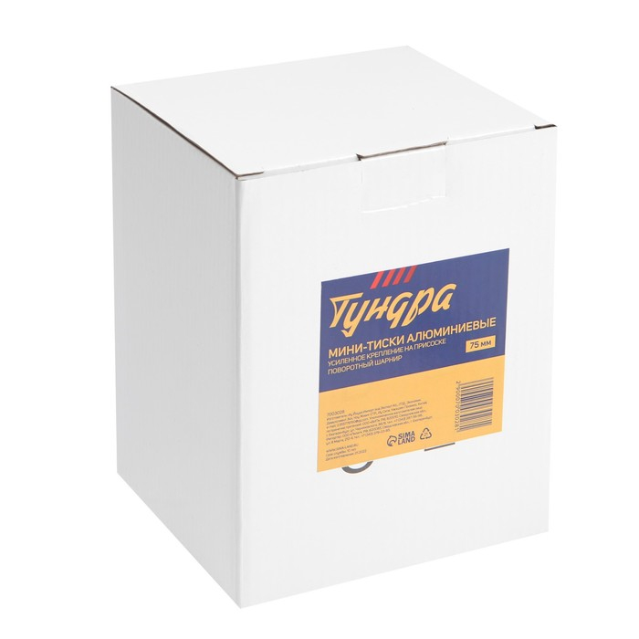 Мини-тиски алюминиевые ТУНДРА, усиленное крепление на присоске, поворотный шарнир, 75 мм