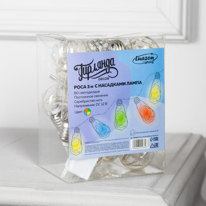 Гирлянда «Нить» 3 м с насадками «Лампа», IP20, прозрачная нить, 80 LED, свечение мульти, 8 режимов, 220 В