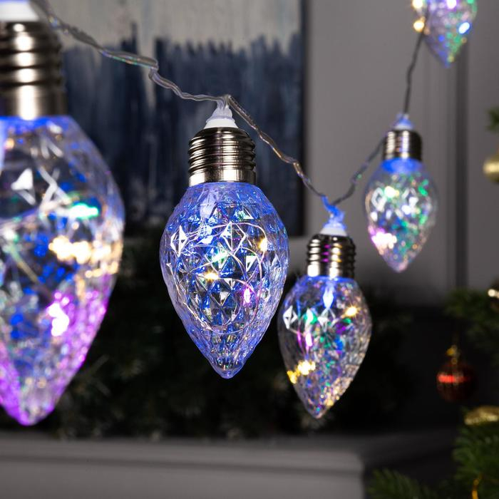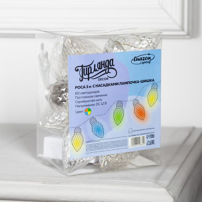 Гирлянда «Нить» 3 м с насадками «Лампочки шишки», IP20, прозрачная нить, 80 LED, свечение мульти, 8 режимов, 220 В