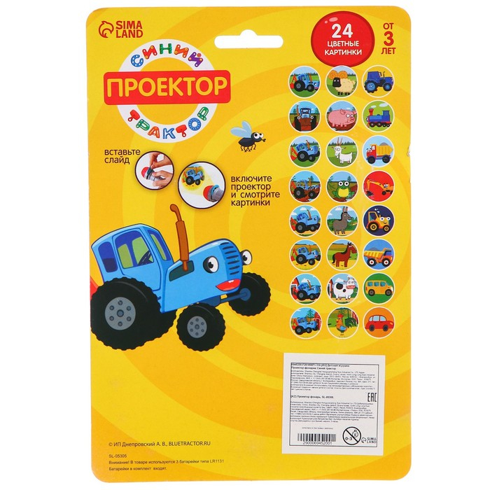Проектор-фонарик «Синий трактор», свет, цвет синий