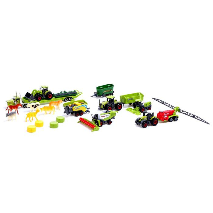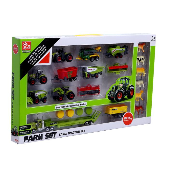 Набор металлических тракторов «Ферма», с животными, МИКС