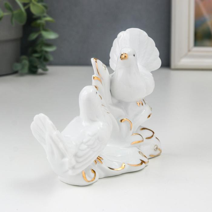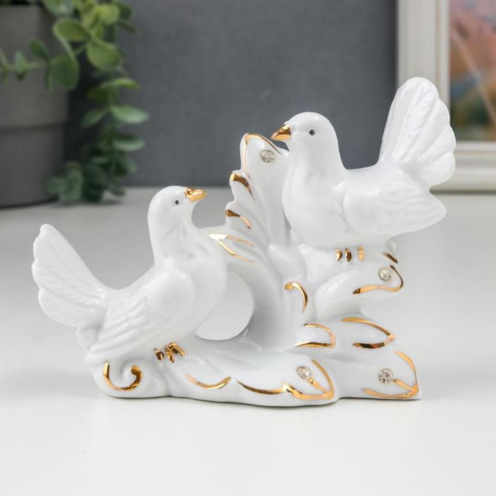 Сувенир керамика "Белые голуби на пушистой ветке" стразы 10х5,3х13 см