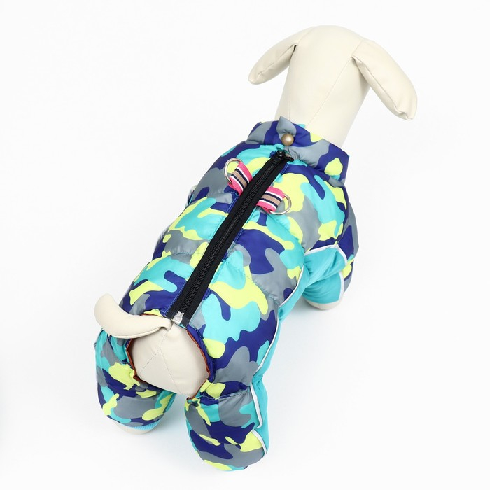 Зимний комбинезон для собак застегивается молнией на спине, благодаря этому животик питомца максимально защищен от ветра.