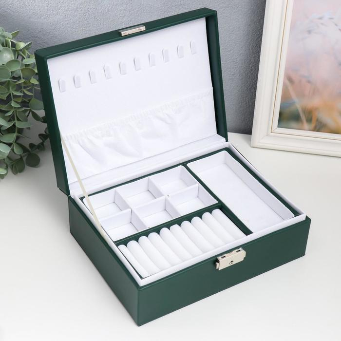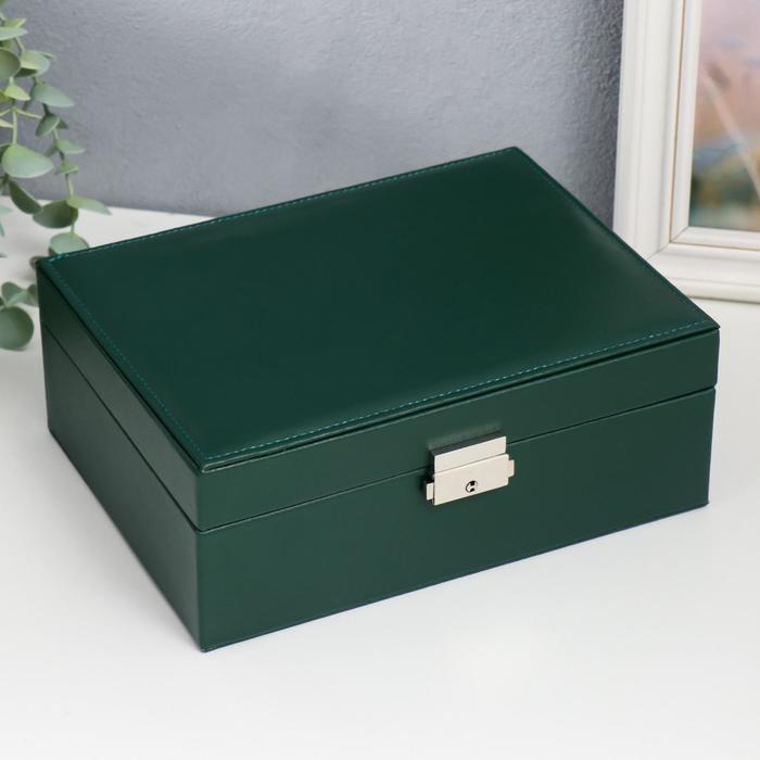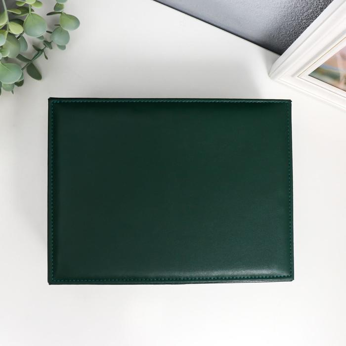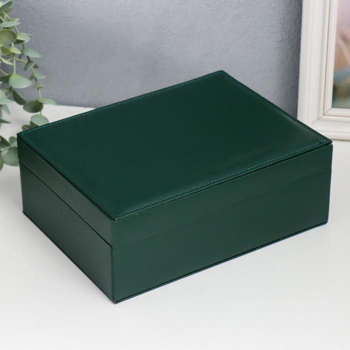 Шкатулка кожзам для украшений "Тёмно-зелёная матовая" 9х23х17 см