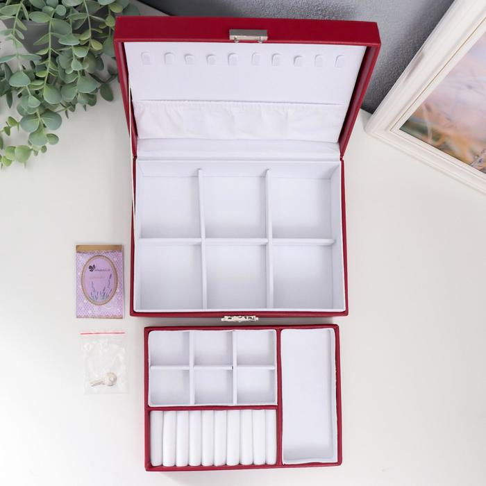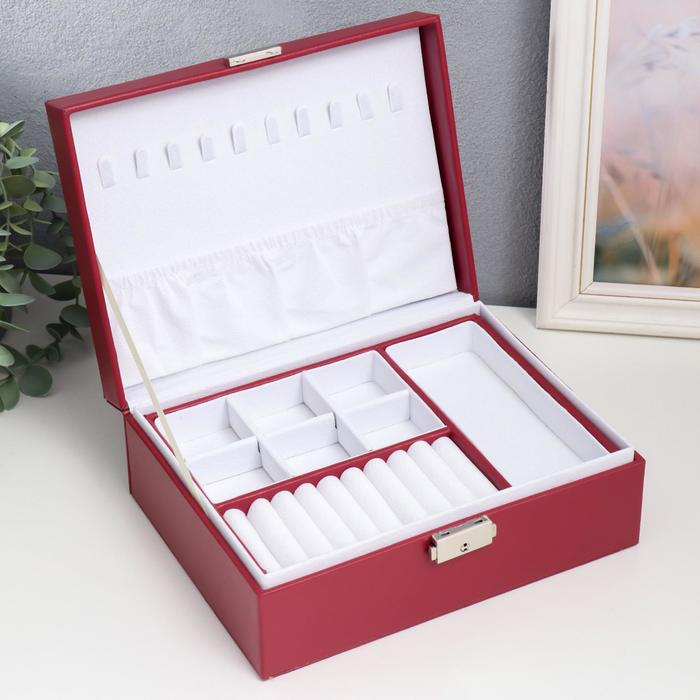 Шкатулка кожзам для украшений "Красная матовая" 9х23х17 см