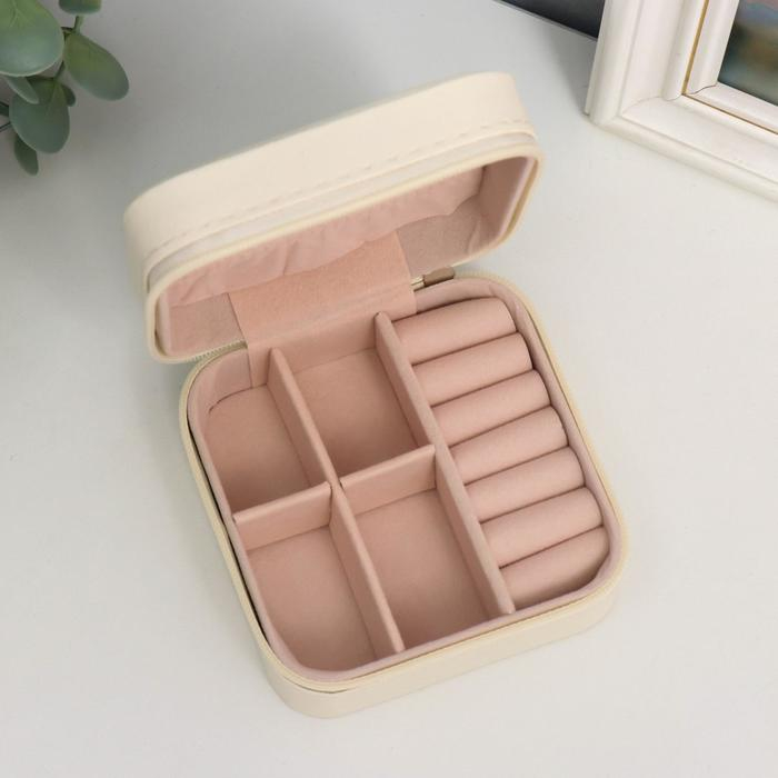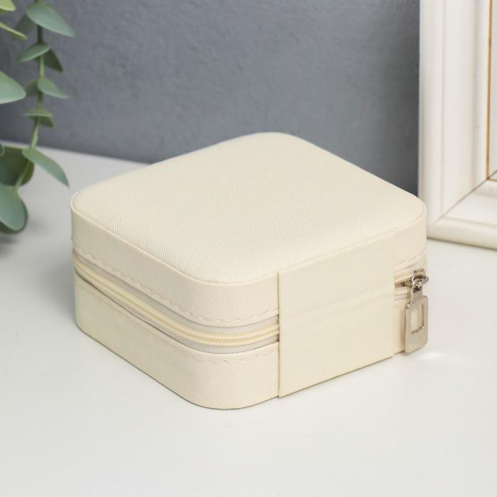Шкатулка кожзам для украшений "Штрихи. Бежевая" 5х10х10 см