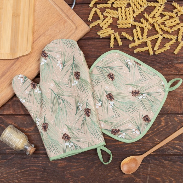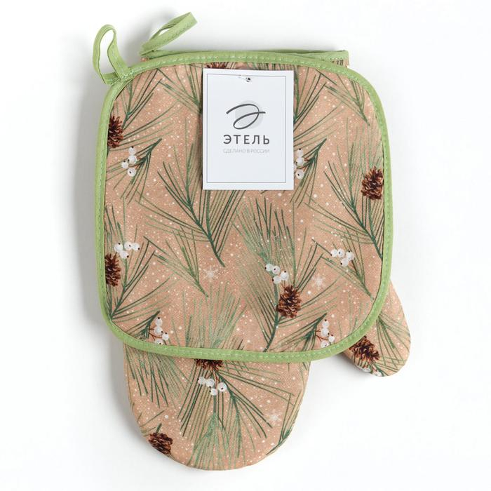 Набор "Spruce branches" варежка-прихватка 20х28см, прихватка 19х19см, 100% хл, ватин 250г/м2