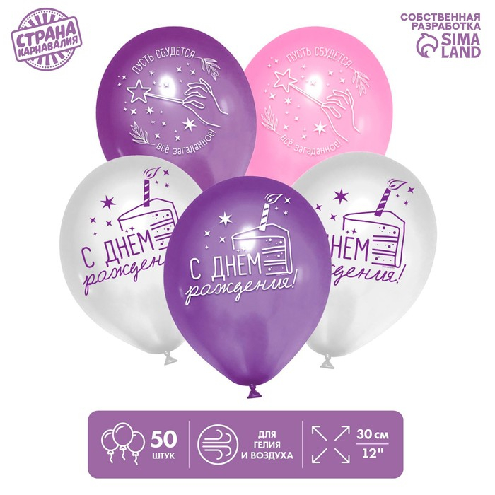 Воздушный шар латексный 12" «С днем рождения», звезды, 50 шт.