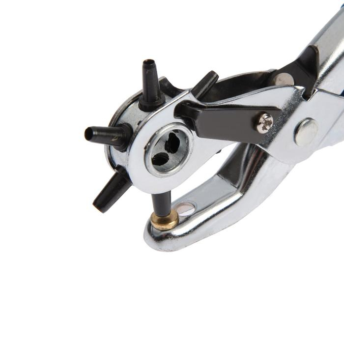 Оснащен пробойниками на 2, 2.5, 3, 3.5, 4, и 4.5 мм в диаметре. Это создает удобство в работе с инструментом и позволяет делать отверстия необходимой величины.