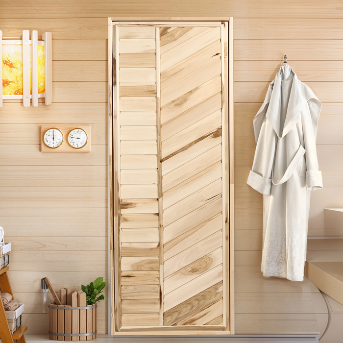 Дверной блок для бани, 170×70см, из липы, на клиньях, массив, "Добропаровъ"