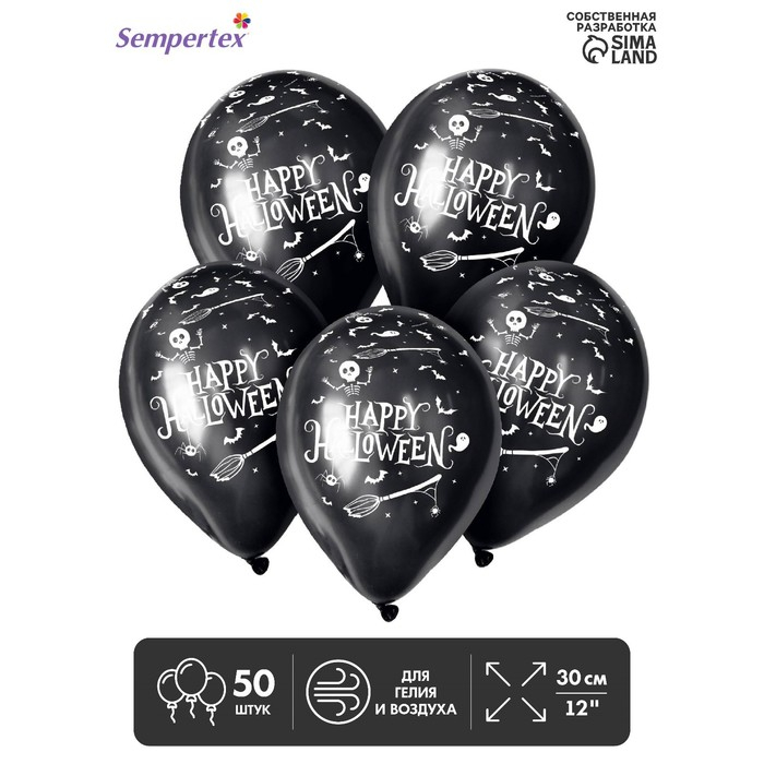 Воздушный шар латексный 12" «Хеллоуин», пастель, цвет чёрный, 50 шт.