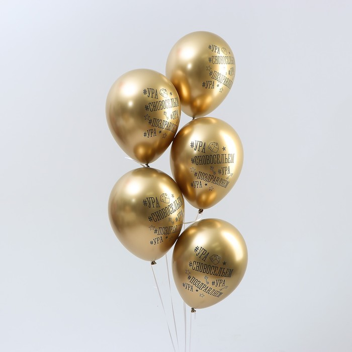 Воздушный шар латексный 12" «С Новосельем», золото хром, 50 шт.