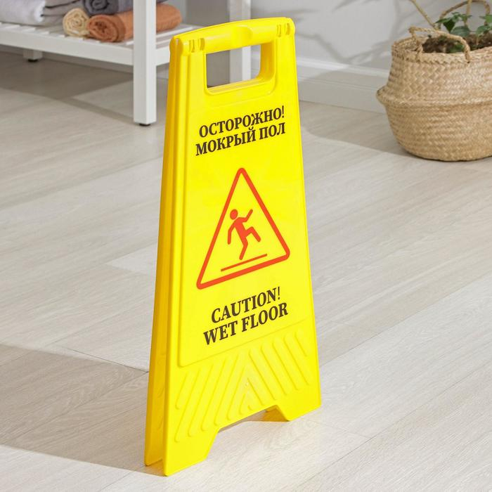 Знак «Мокрый пол», 61×30, пластик, цвет жёлтый