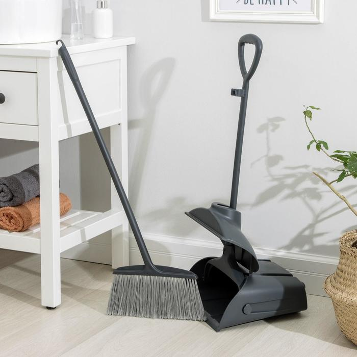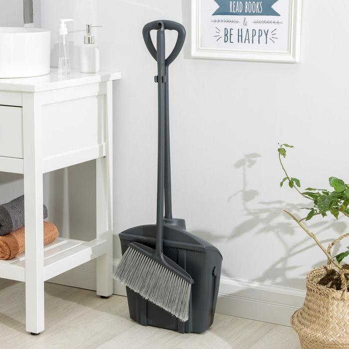 Веник с совком «Ленивка», 19,5×25×90 см, цвет бежевый