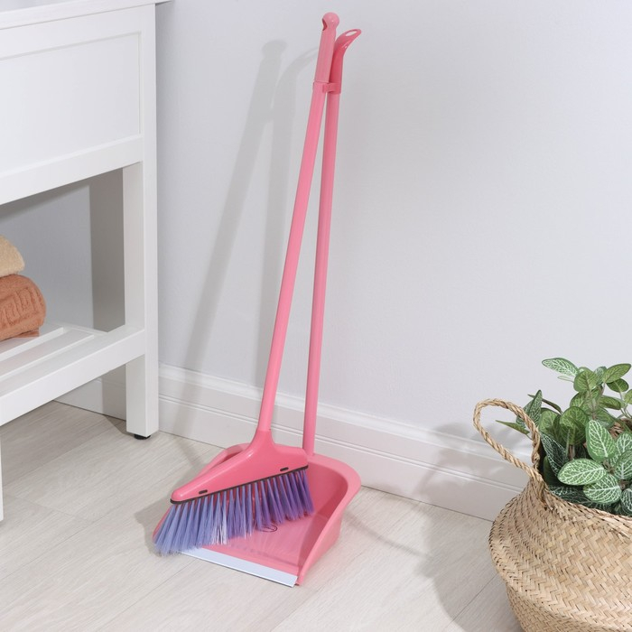 Щётка для пола: совок 24×25×81 см, щётка 24 см, цвет персиковый