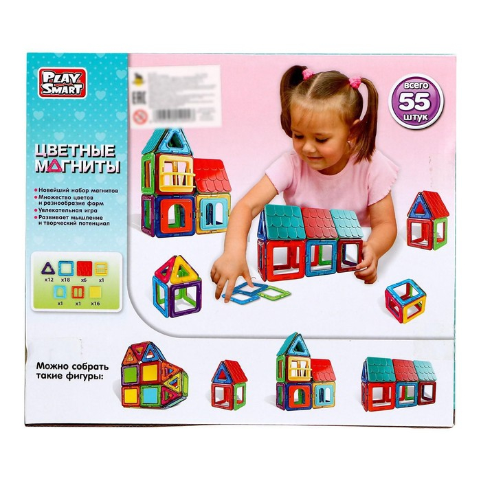 Конструктор магнитный «Цветные магниты», 55 деталей