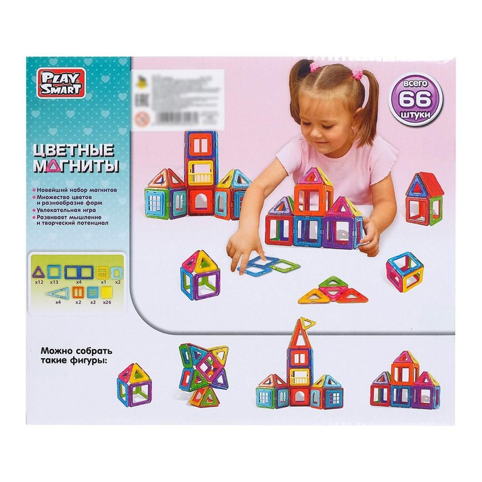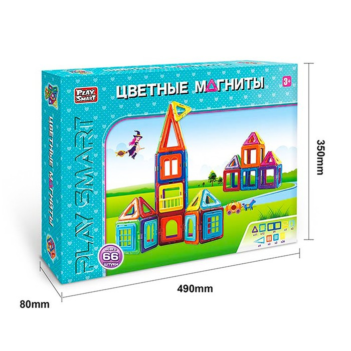 Конструктор магнитный «Цветные магниты», 66 деталей