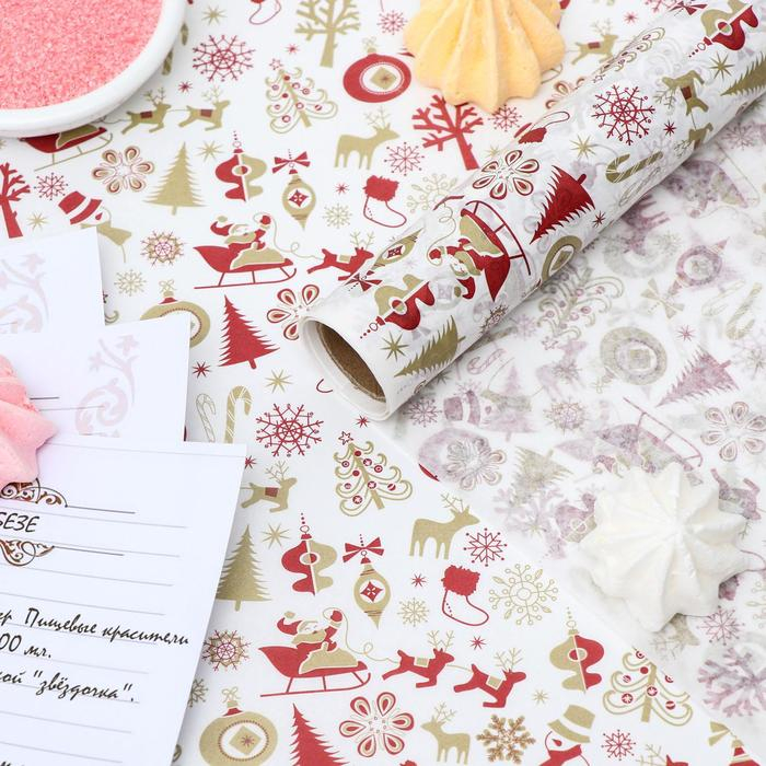 Бумага силиконизированная «Новый Год», для выпечки, 0,38 х 5 м