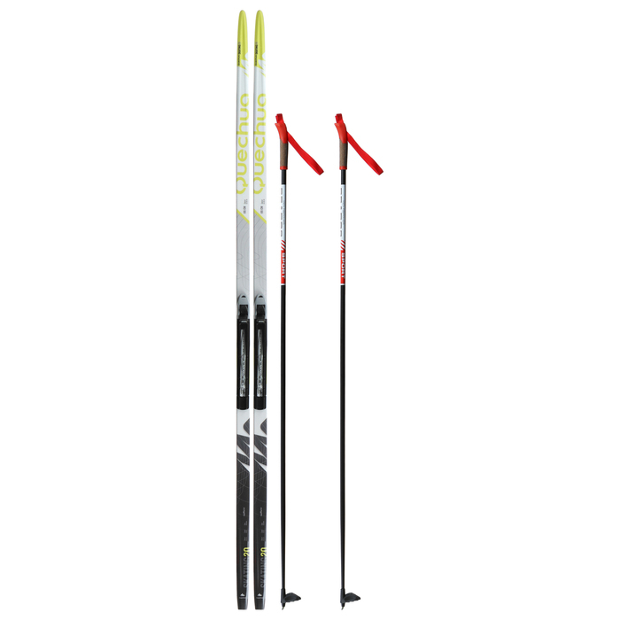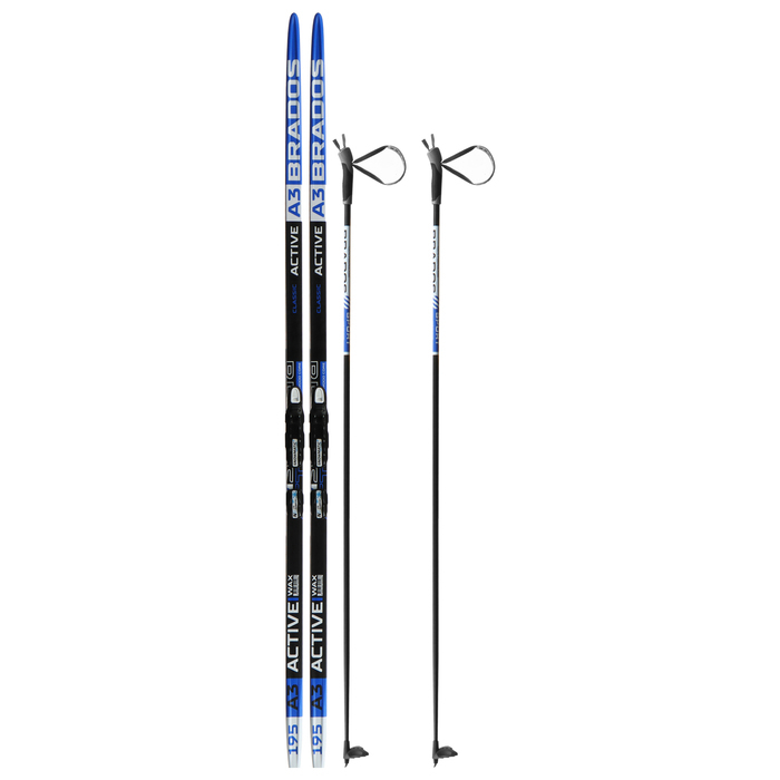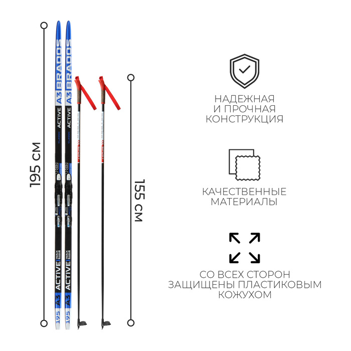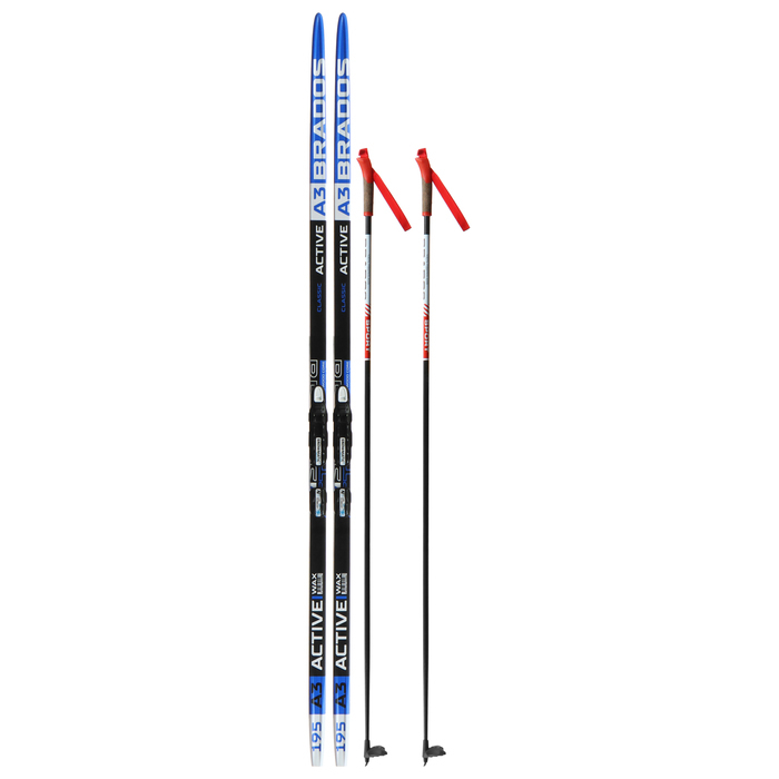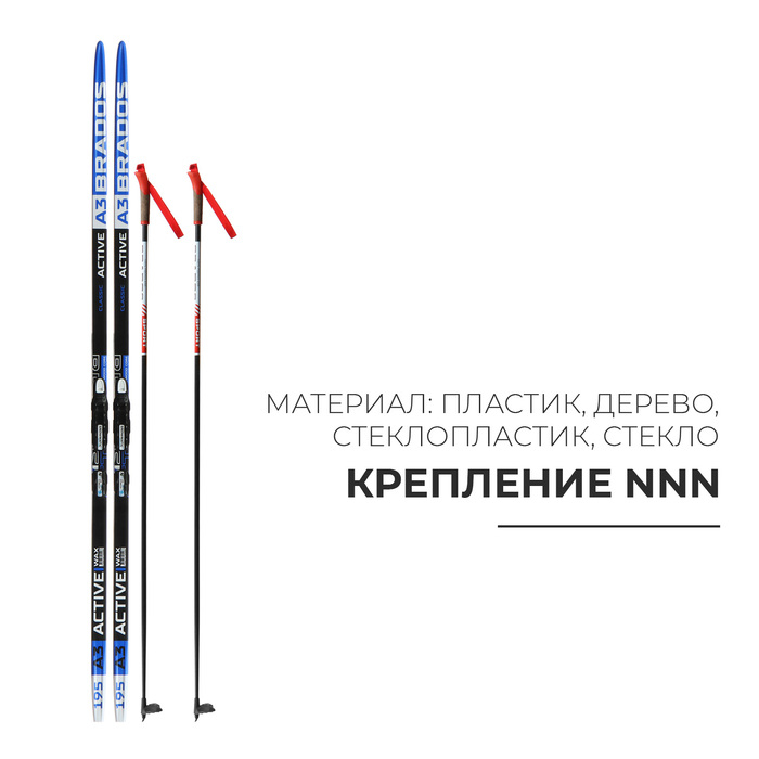 Комплект лыжный: пластиковые лыжи 195 см без насечек, стеклопластиковые палки 155 см, крепления NNN, цвета МИКС