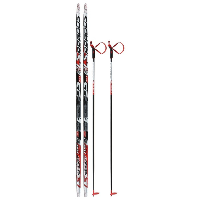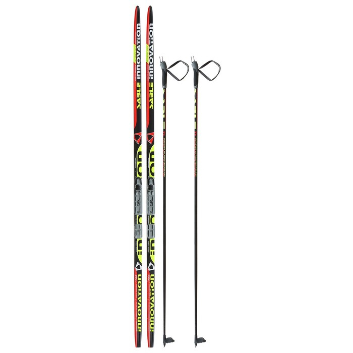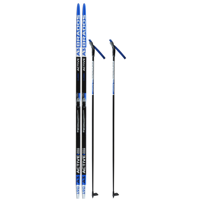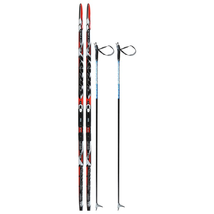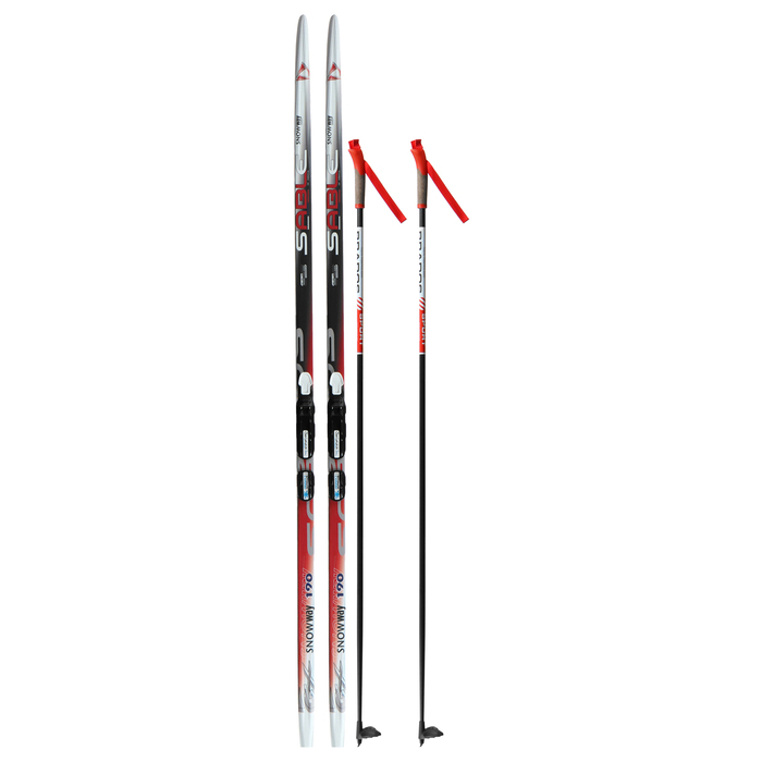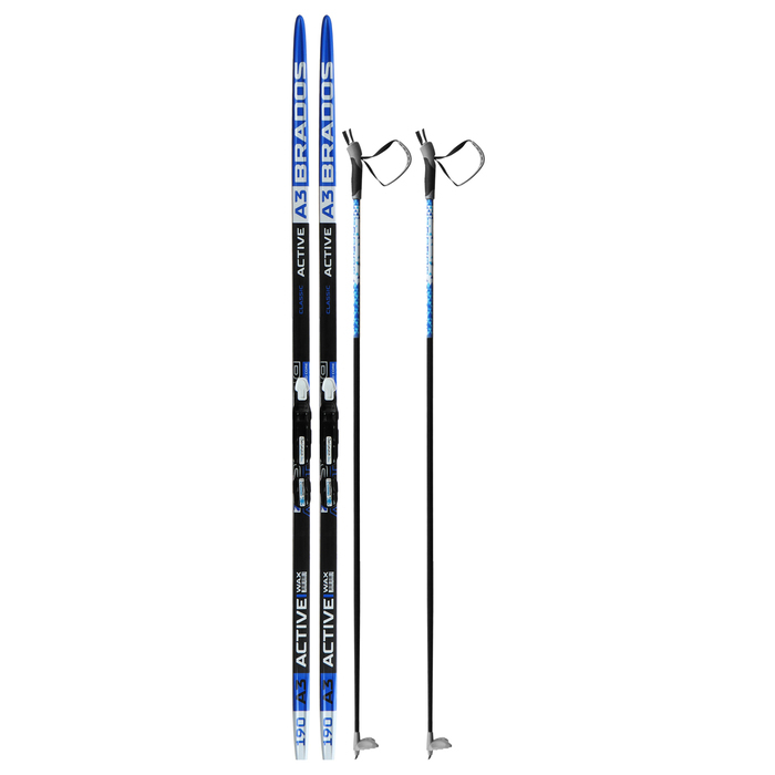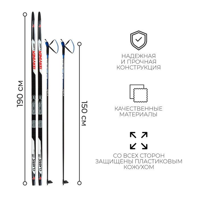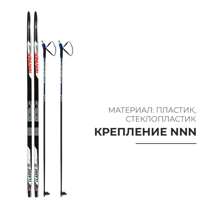 Комплект лыжный: пластиковые лыжи 190 см без насечек, стеклопластиковые палки 150 см, крепления NNN, цвета МИКС