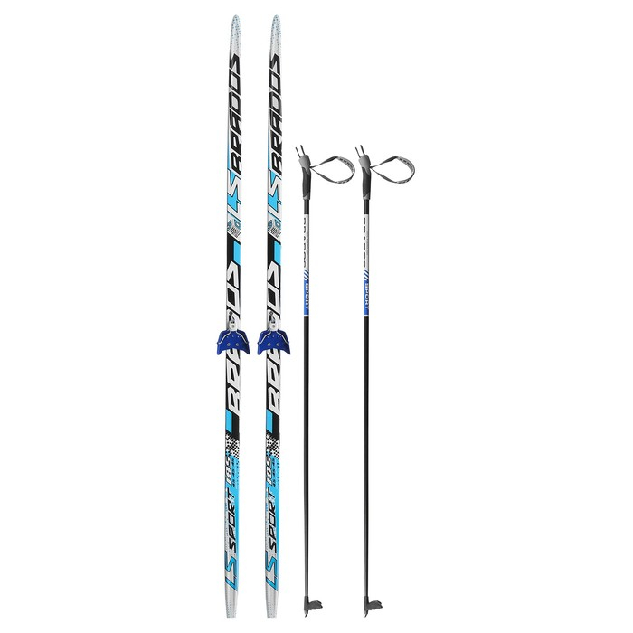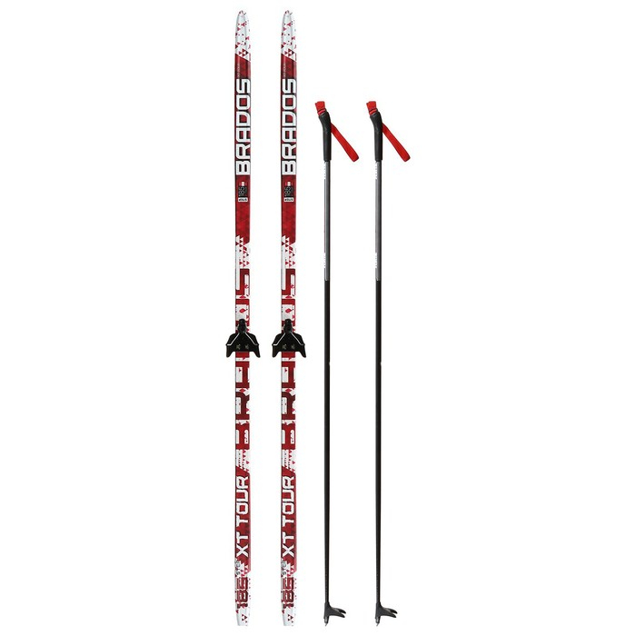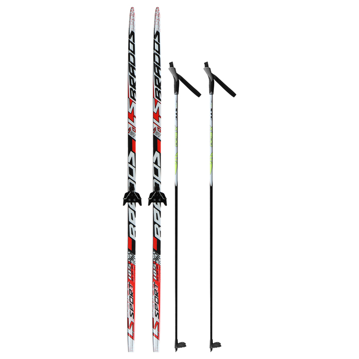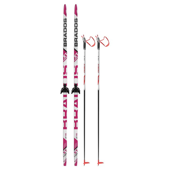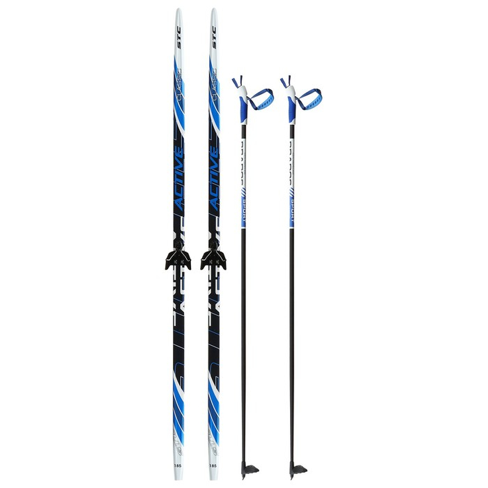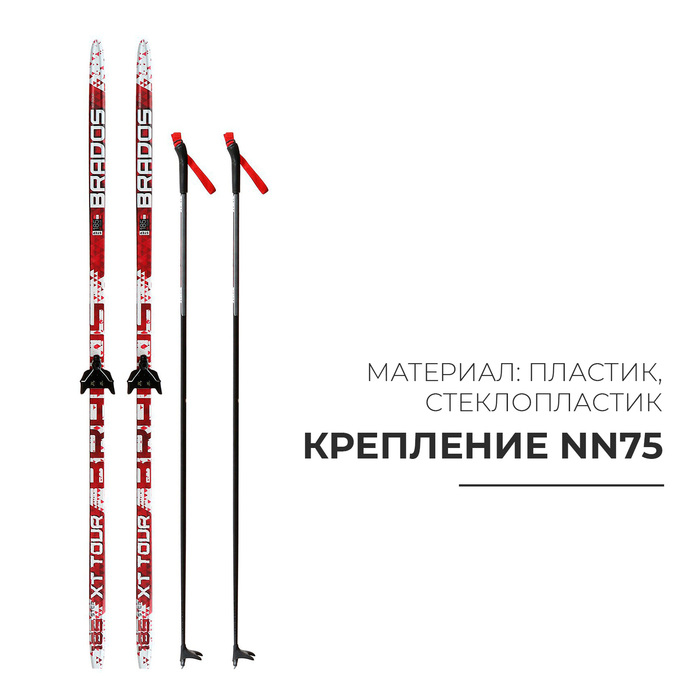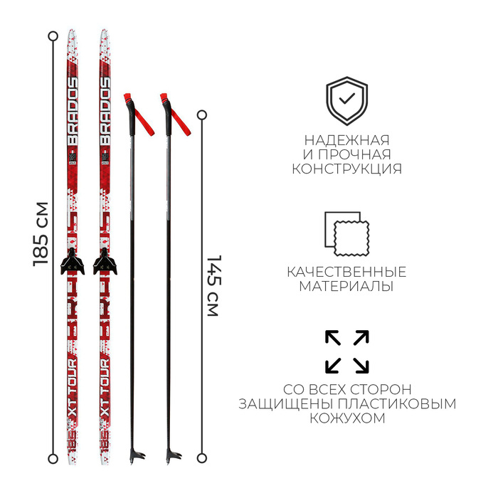 Комплект лыжный: пластиковые лыжи 185 см с насечкой, стеклопластиковые палки 145 см, крепления NN75 мм, цвета МИКС