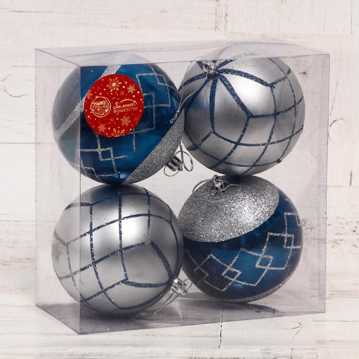 Набор шаров пластик d-10 см, 4 шт "Арсена" серебристо-синий