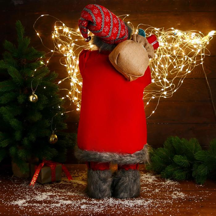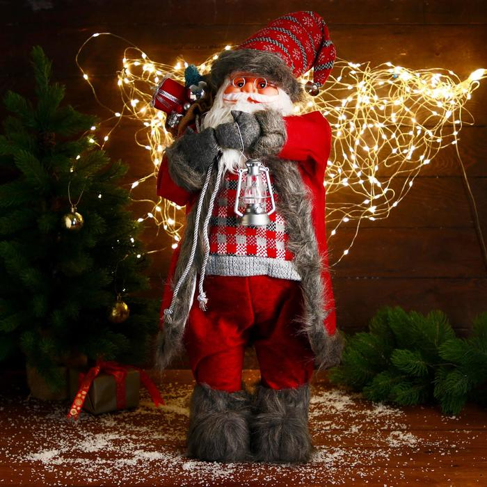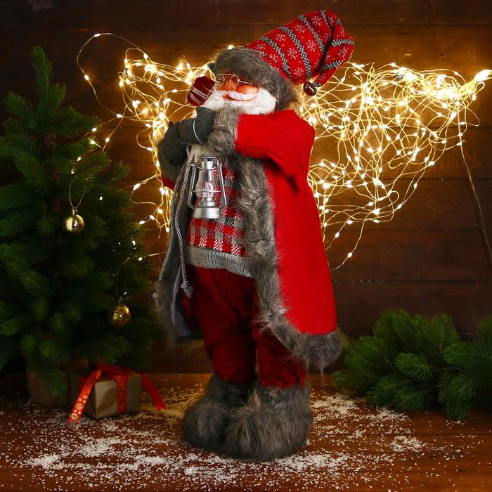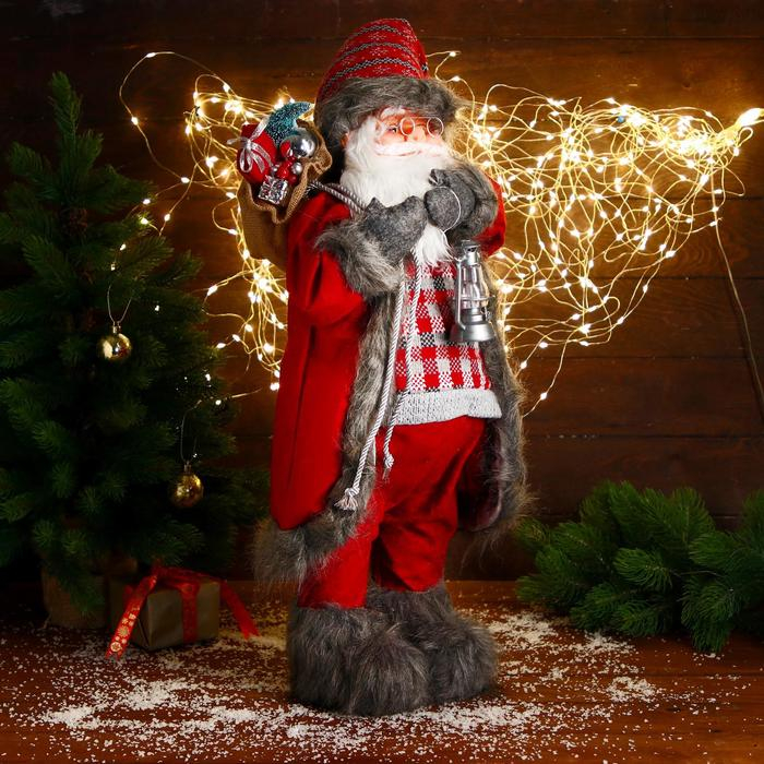 Дед Мороз "В красном клетчатом свитере, с фонариком" 60 см