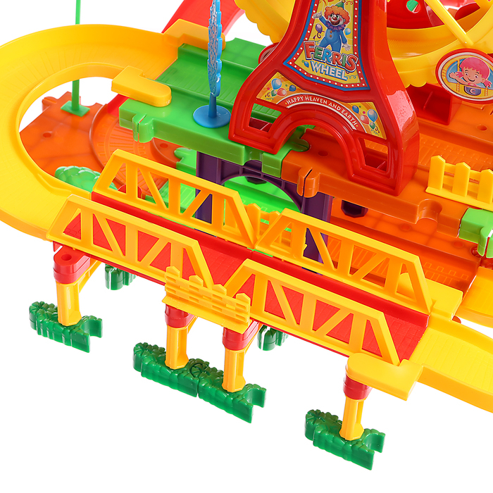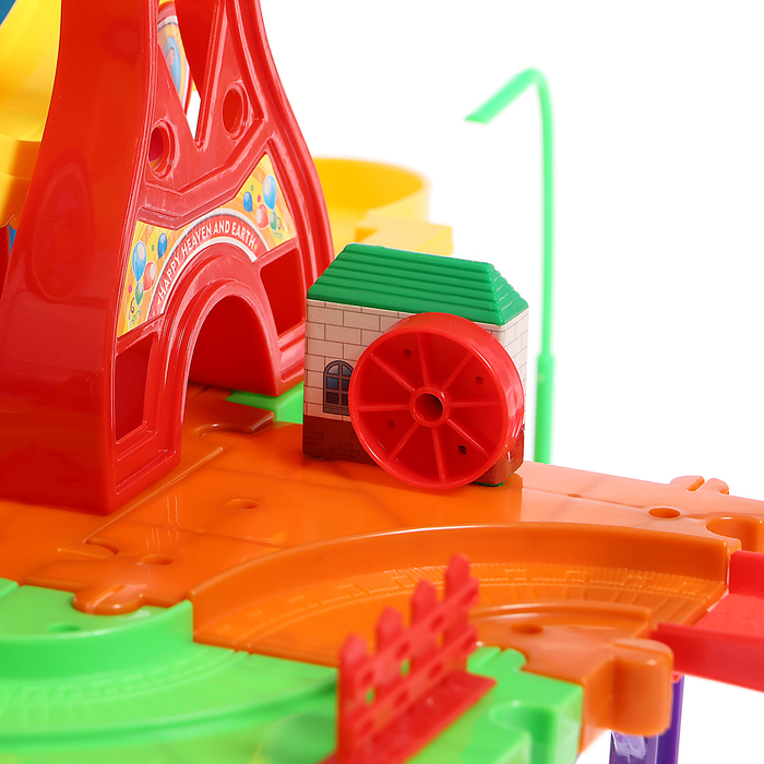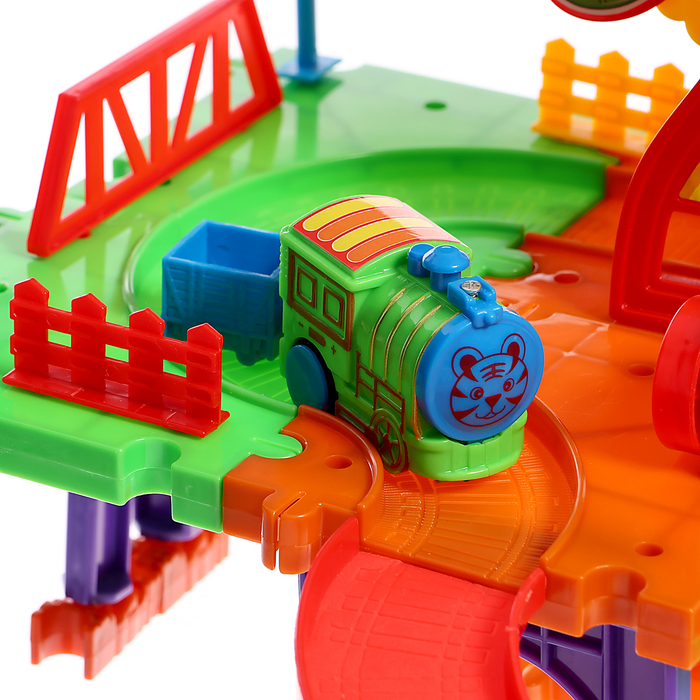Совершите захватывающее путешествие по яркой и необычной железной дороге. Малыш сам соберёт красочный трек и отправится навстречу приключениям.