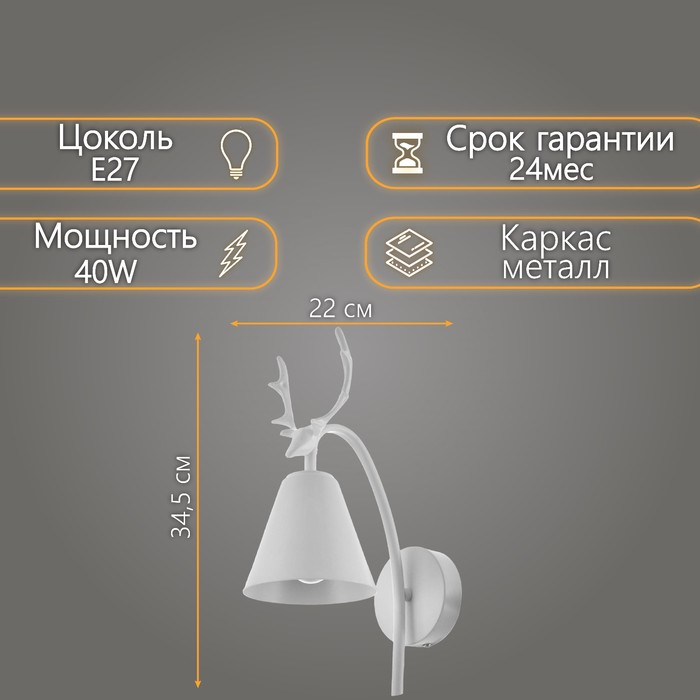 Бра 1670/1WT E27 40Вт белый 22х12х34,5 см