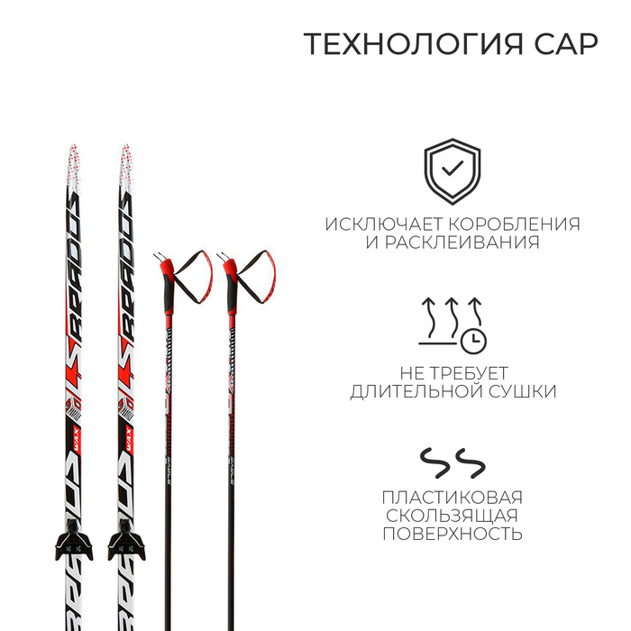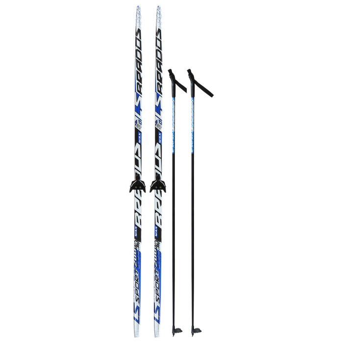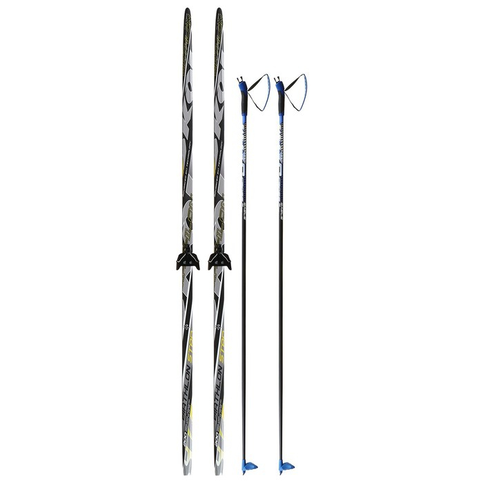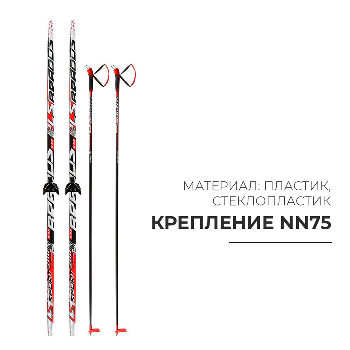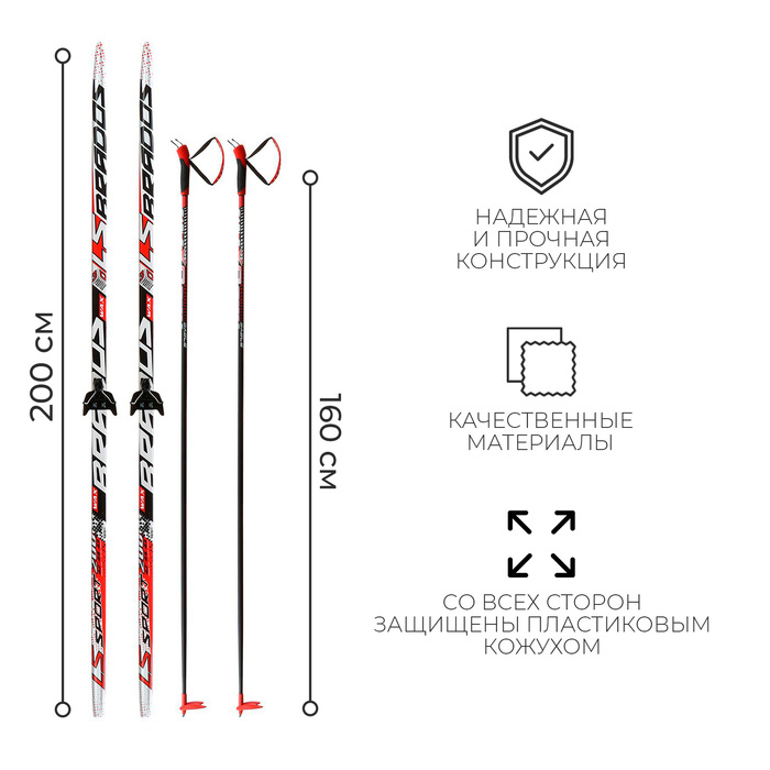 Комплект лыжный: пластиковые лыжи 200 см без насечек, стеклопластиковые палки 160 см, крепления NN75 мм, цвета МИКС