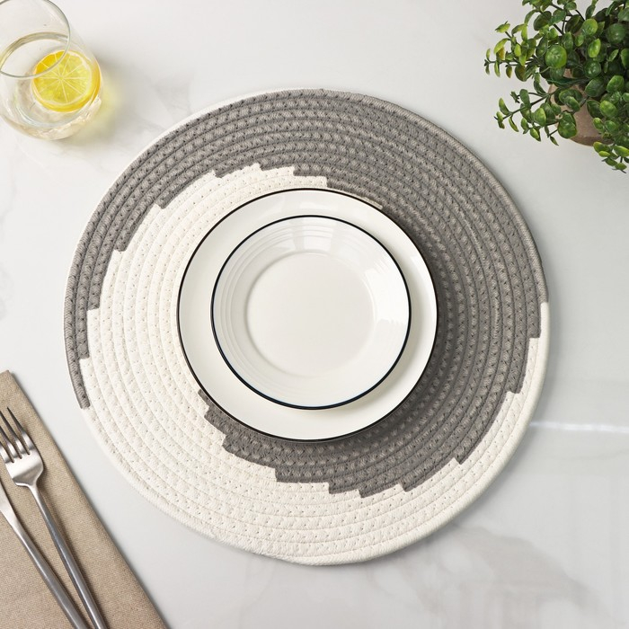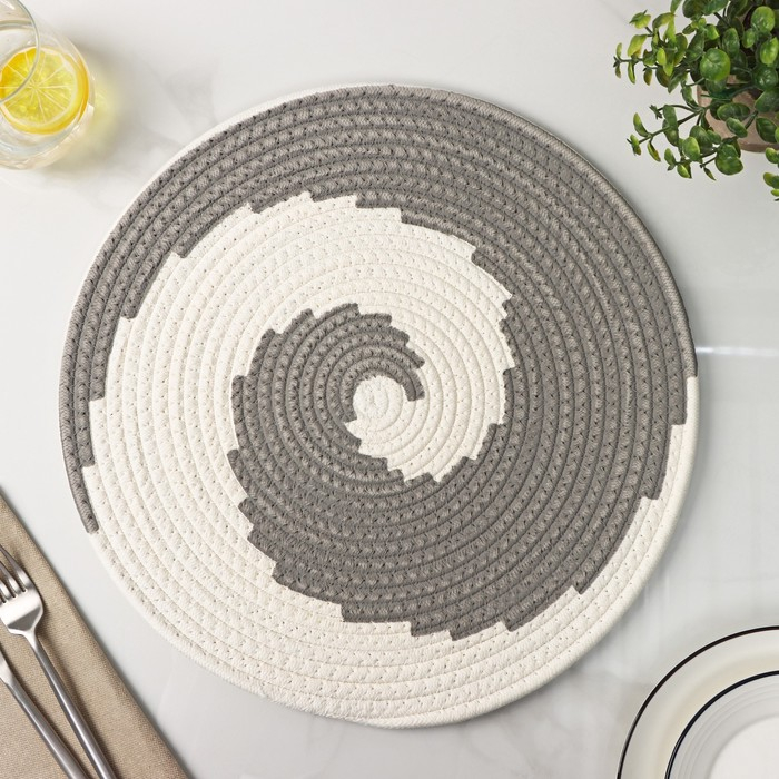 Салфетка сервировочная на стол Доляна «Гипноз», d=38 см, цвет серо-белый