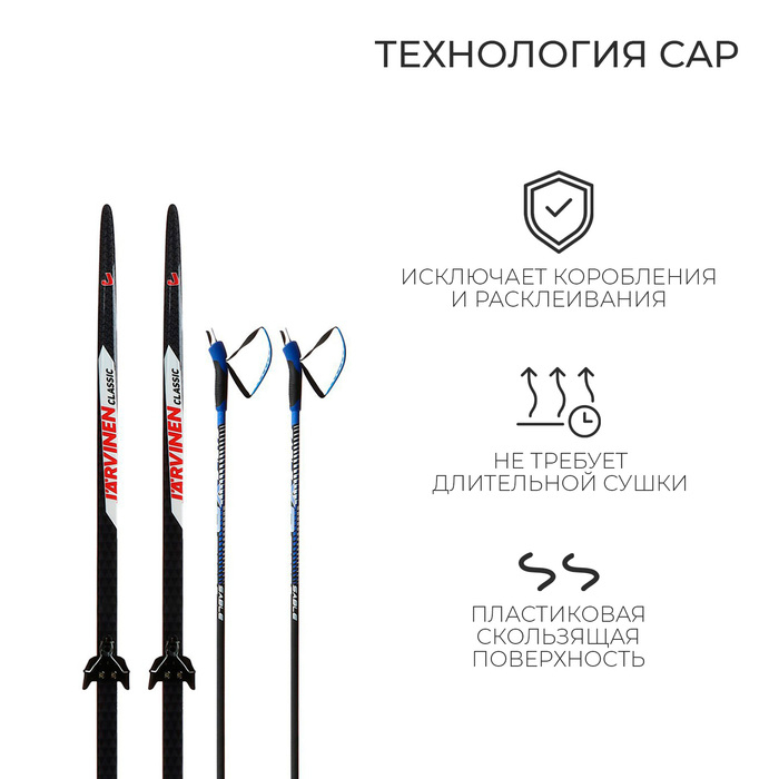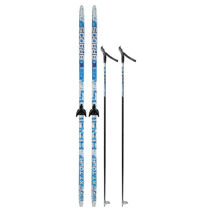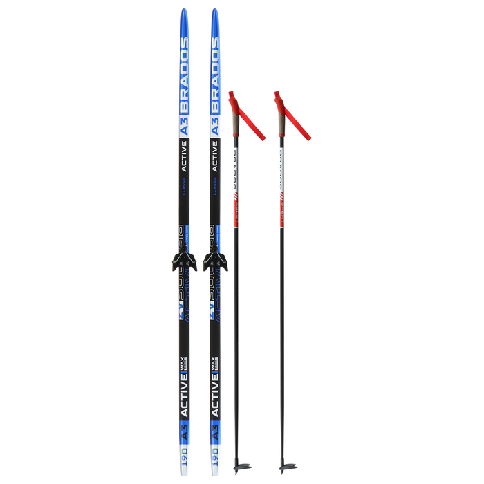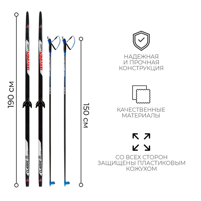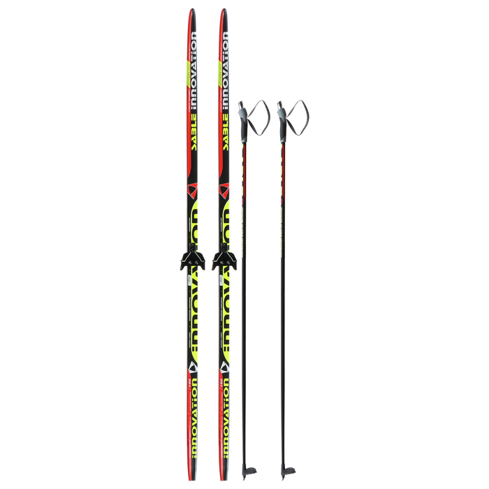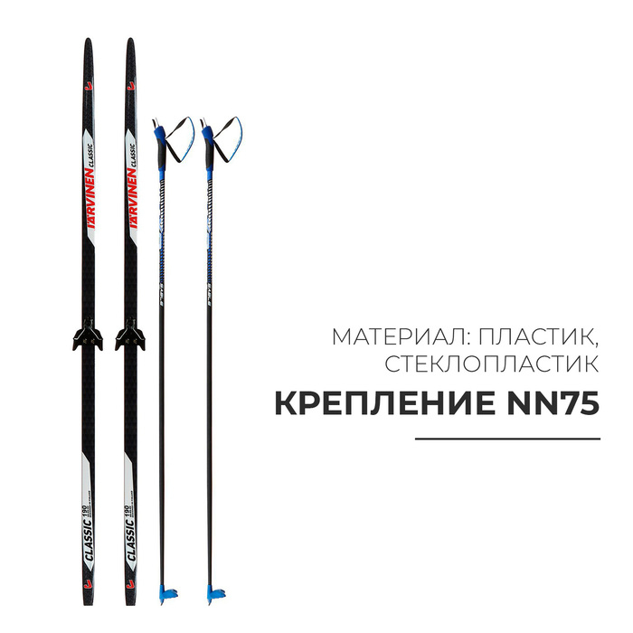 Комплект лыжный: пластиковые лыжи 190 см без насечек, стеклопластиковые палки 150 см, крепления NN75 мм, цвета МИКС