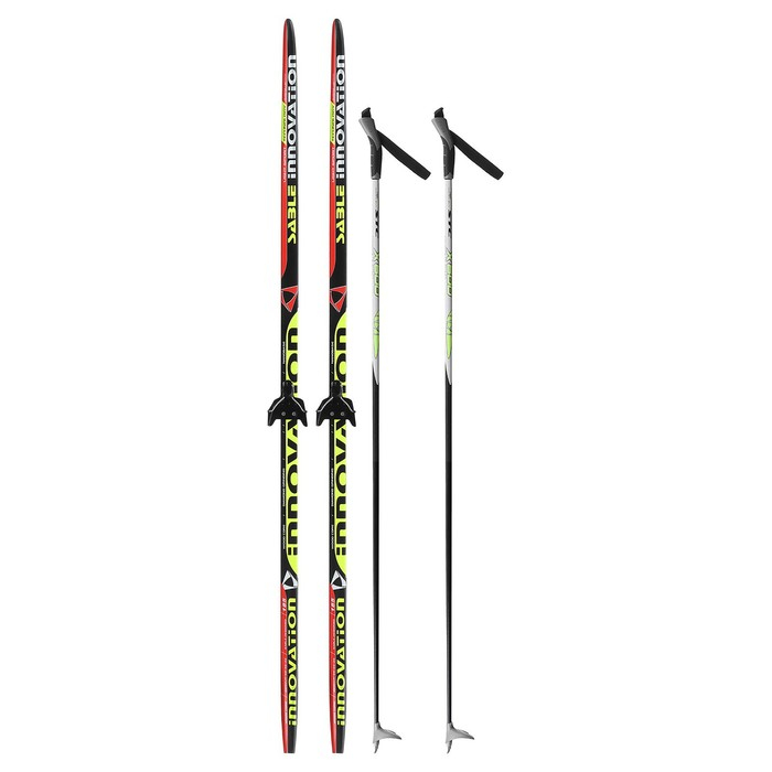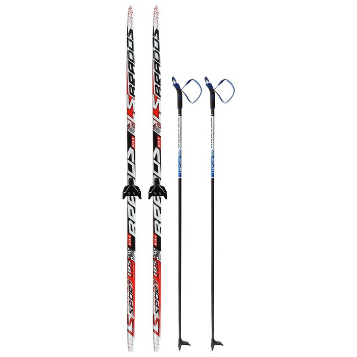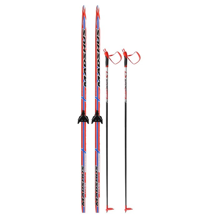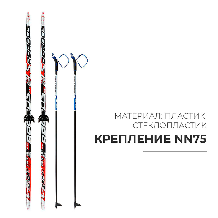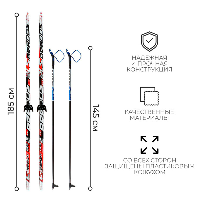 Комплект лыжный: пластиковые лыжи 185 см без насечек, стеклопластиковые палки 145 см, крепления NN75 мм, цвета МИКС