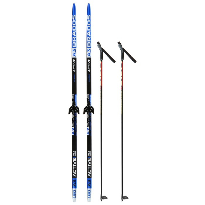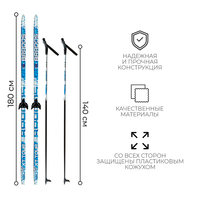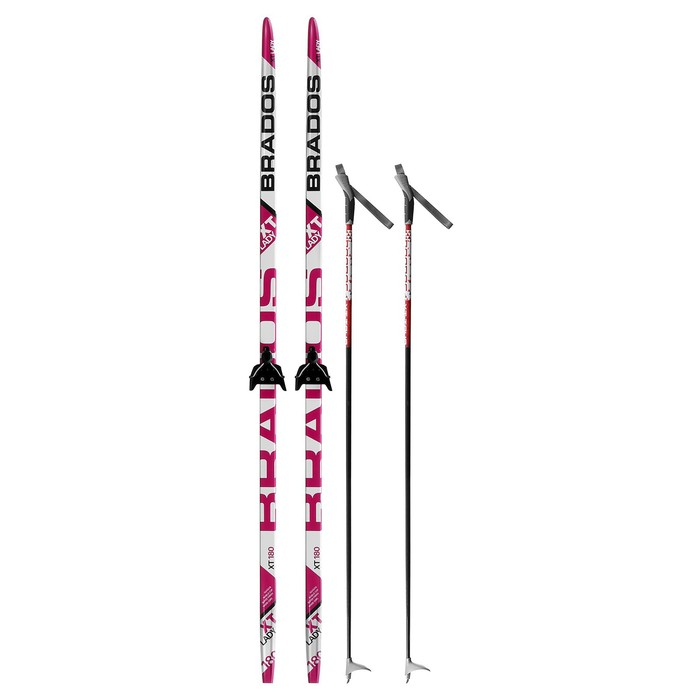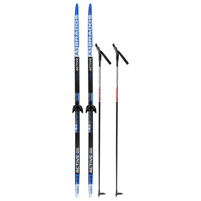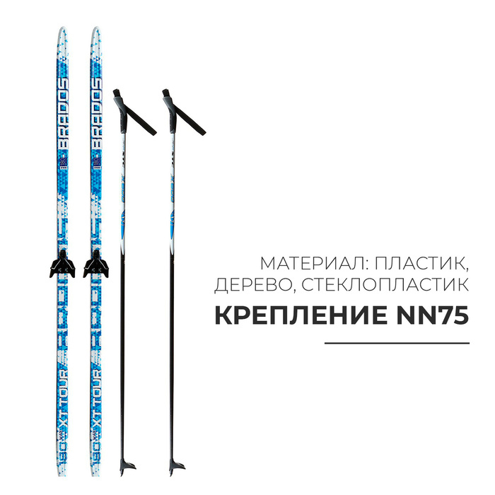 Комплект лыжный: пластиковые лыжи 180 см без насечек, стеклопластиковые палки 140 см, крепления NN75 мм, цвета МИКС