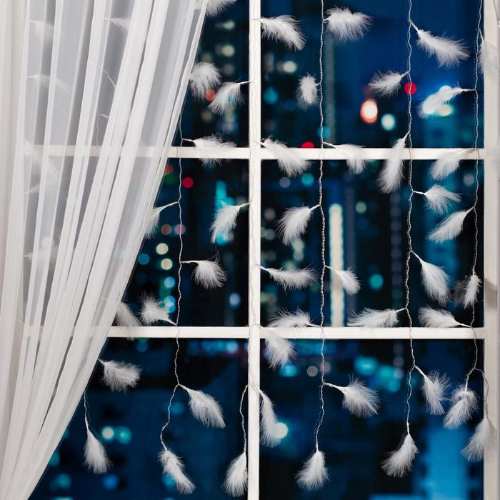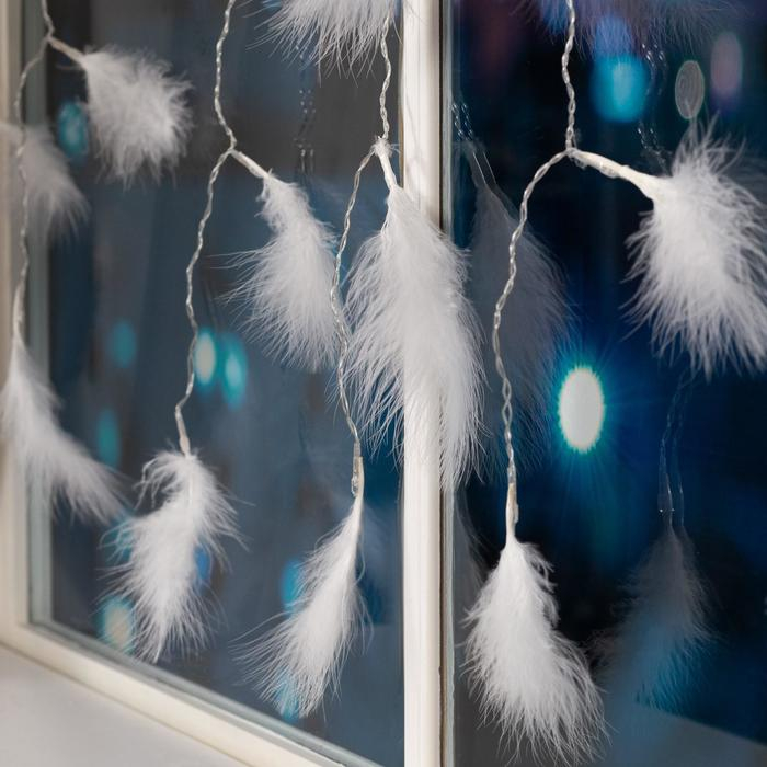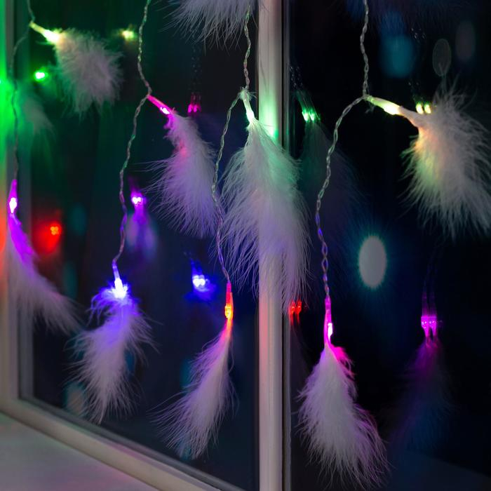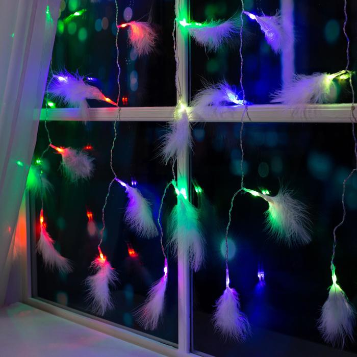 Гирлянда «Занавес» 3 × 1.4 м с насадками «Перья», IP20, прозрачная нить, 80 LED, свечение мульти (RG/RB), мигание, 220 В